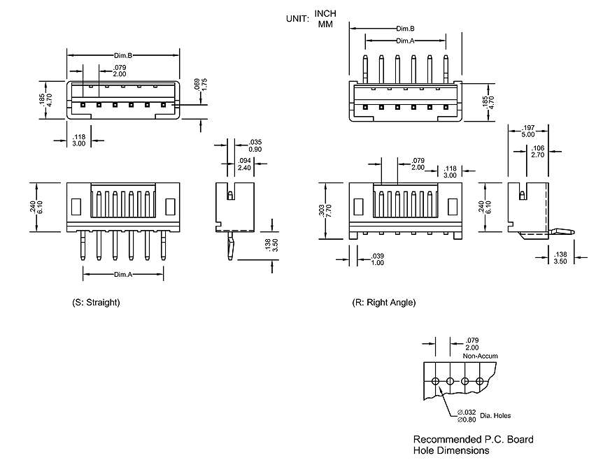 * Applicable PC board thickness: .063"[1.6mm]