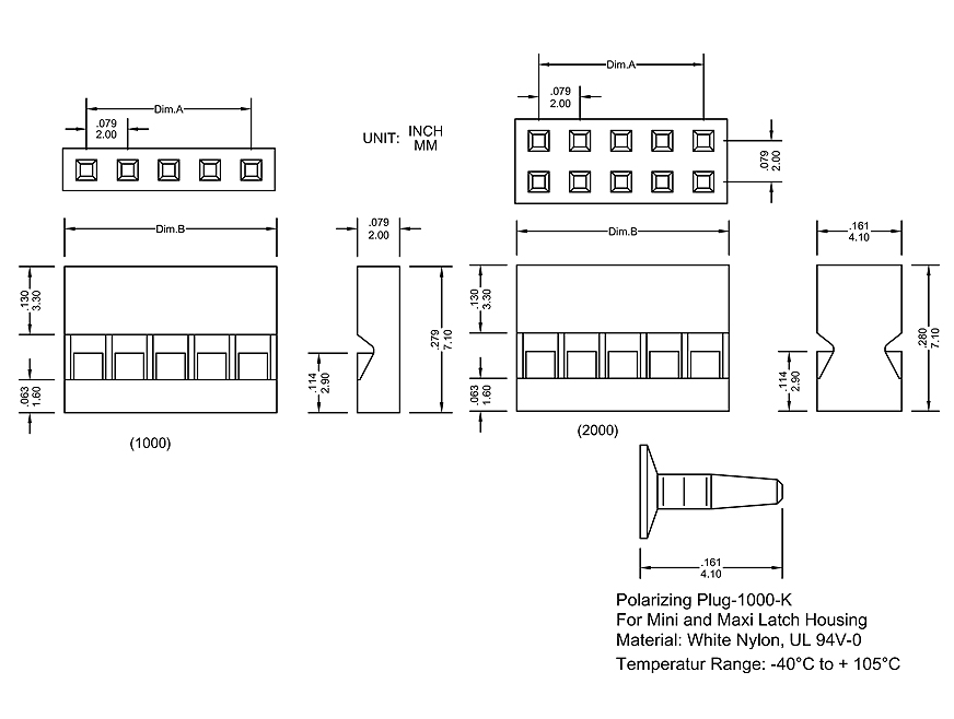 * Double Row, .079"X.079" [2.00mmX2.00mm]