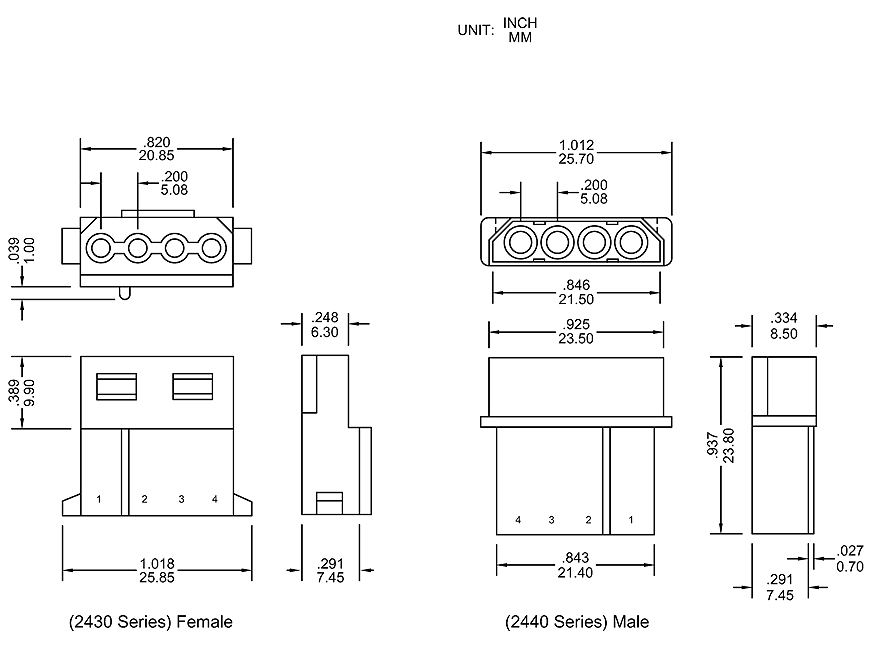 * 2440 Series mates with .084" [2.13mm] crimp treminal