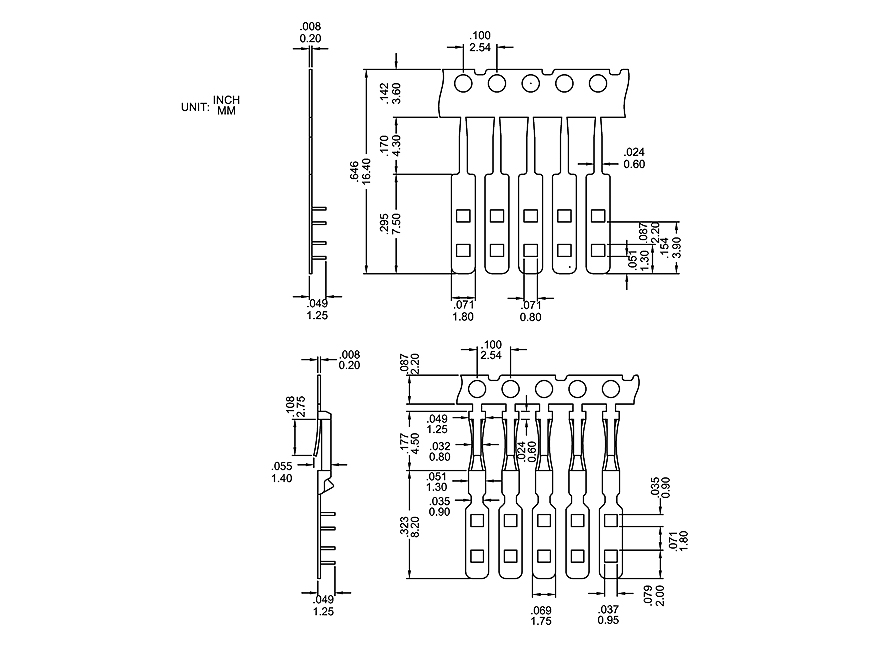 * Accepts 2.54mm pitch Flexible Flat Cable