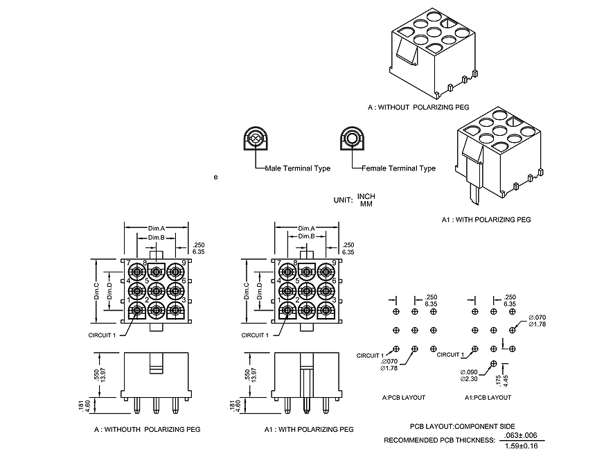* Contact material : Male is Brass, Female is Phos.Bronze
