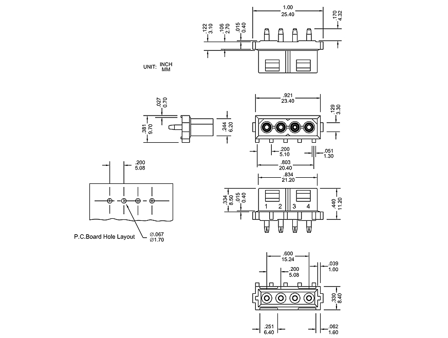 * Terminal, Brass, .084"[2.13mm] Dia.: