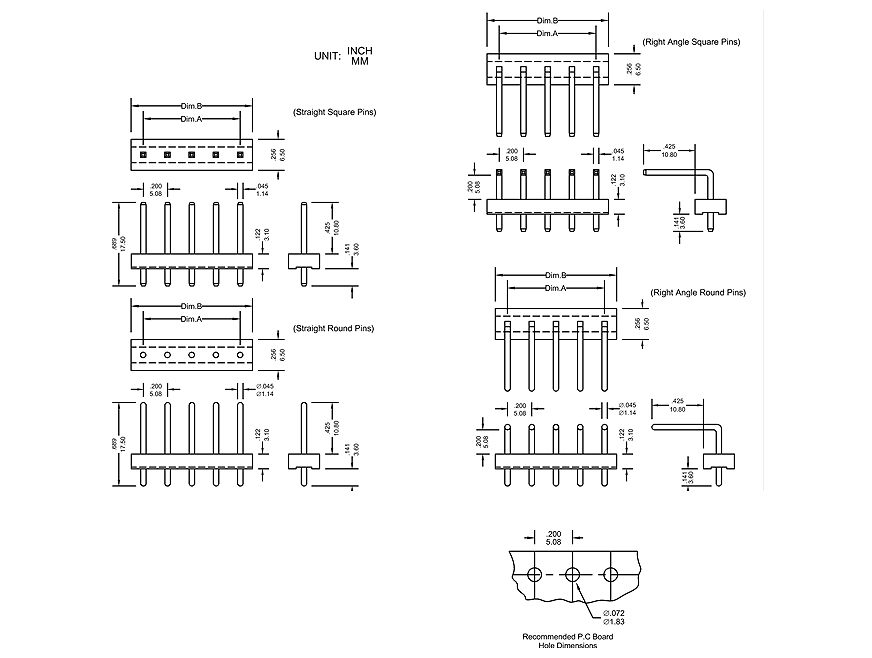 * .045" [1.14mm] Square wire pins
