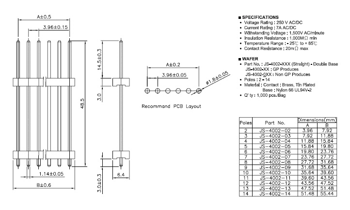 Poles: 02-14 Material: Post : Brass Tin / plated Base: Nylon 66 UL 94V-2 Q'ty: 1,000 pcs/bag |