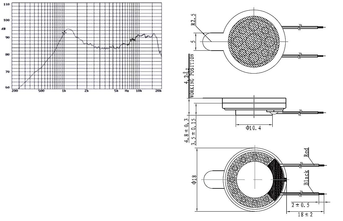 • SPL@0.8,1.0,1.2,1.5KHz (0.1W/0.1m): 90±3dB