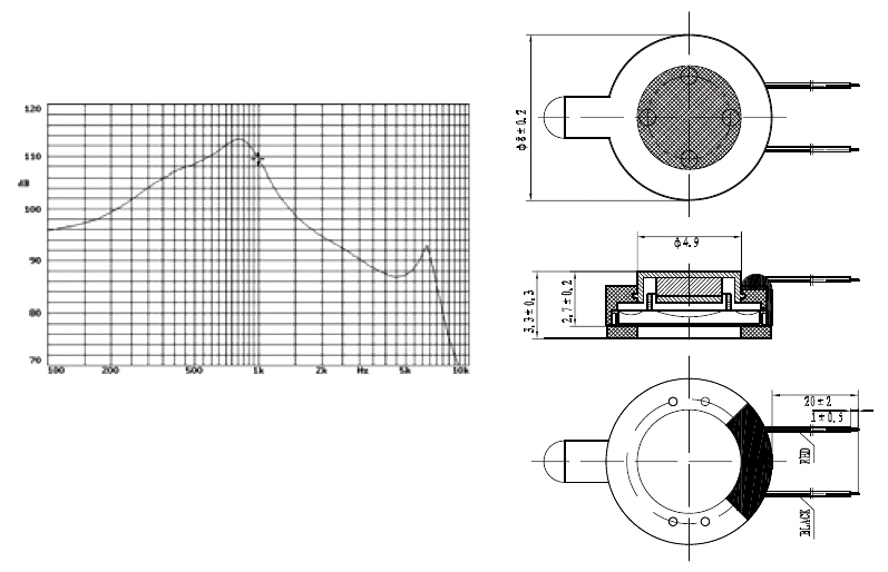 - SPL@1KHz(100mV) : 110 ± 3dB