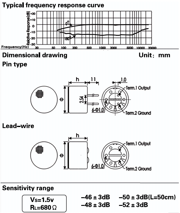• Sensitivity: See above(0dB = 1v / Pa, 1kHz)