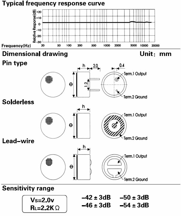 - Sensitivity: See above(0dB = 1v / Pa, 1kHz)