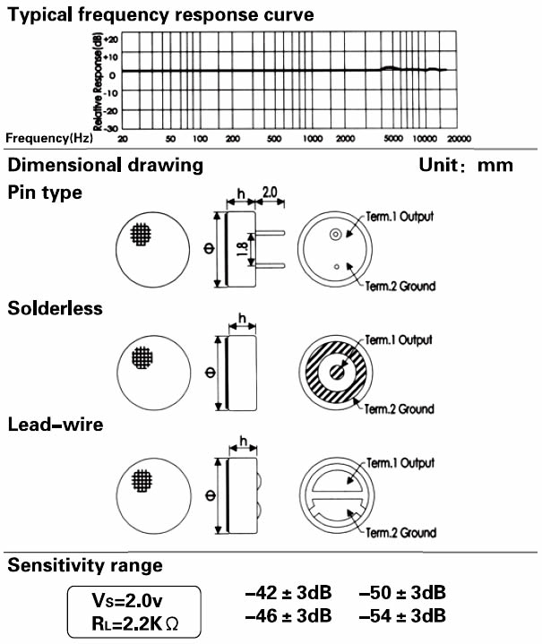- Sensitivity: See above(0dB = 1v / Pa, 1kHz)