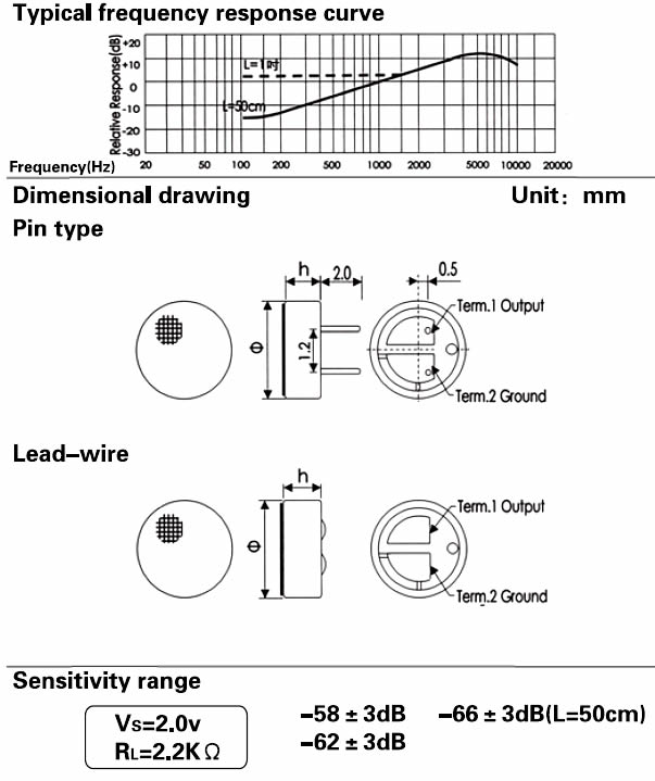 - Sensitivity: See above(0dB = 1v / Pa, 1kHz)