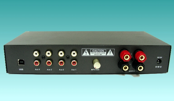 Four line level RCA inputs and one 3.5mm stereo jack are provided along with