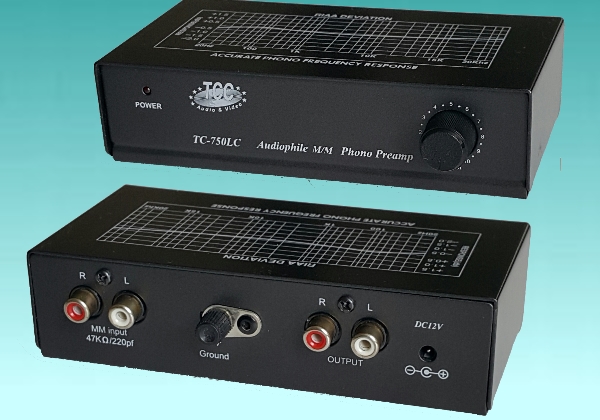 | The TC-750LC professional moving magnet RIAA phono preamplifier is perfect for connecting a turntable to a hi-fi or home theatre system that has no phono input, or for adding a second turntable to a system that has only one phono input. It can also be used with the line input on any computer sound card to allow phono playback thru PC multimedia systems, as well as MP3, wave or CD-R/DVD-R ripping of record albums so they can be added to your mobile portable music collection. TC-750LC features extremely accurate RIAA record compensation as well as very low THM, TIM, audio distortion, and superior S/N. You will be pleasantly surprised with the extremely high audio reproduction quality from this preamp at a fraction of the price charged for similar products from other well known manufacturers. |
