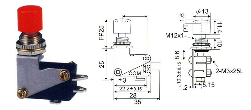 * Type VPS is a push button switches with momentary action using Type V 1A/5A/12A and 15A miniature basic switch inside and has high capacity and a long life.